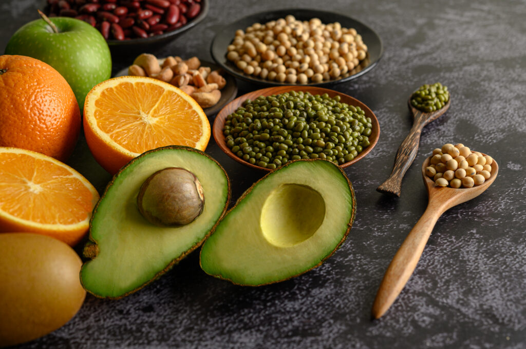 - Abacate: fruta rica em Ômega 3 e, por isso, ajuda a amenizar as ondas de calor e controla os níveis de colesterol no sangue, o que é bom para a saúde cardíaca;